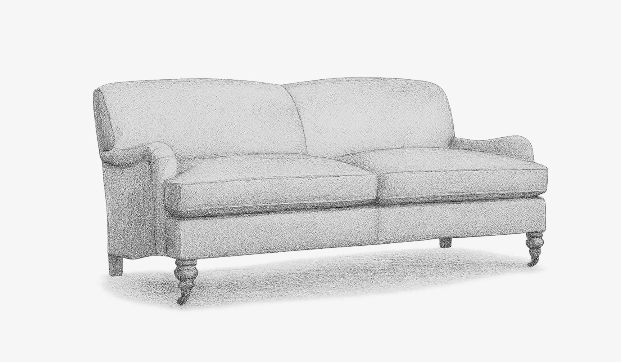 The Penrose Sofa brings a refined, romantic silhouette with its delicately english arms, tight camelback profile, and classic turned legs. This piece balances lightness and formality, perfect for traditional or European-inspired interiors. Its exposed legs and elevated stance give it an airy presence, while plush seat cushions offer inviting comfort.