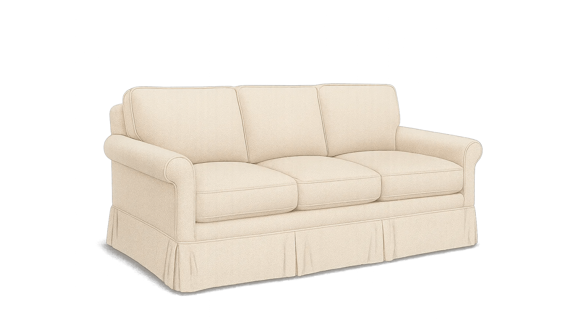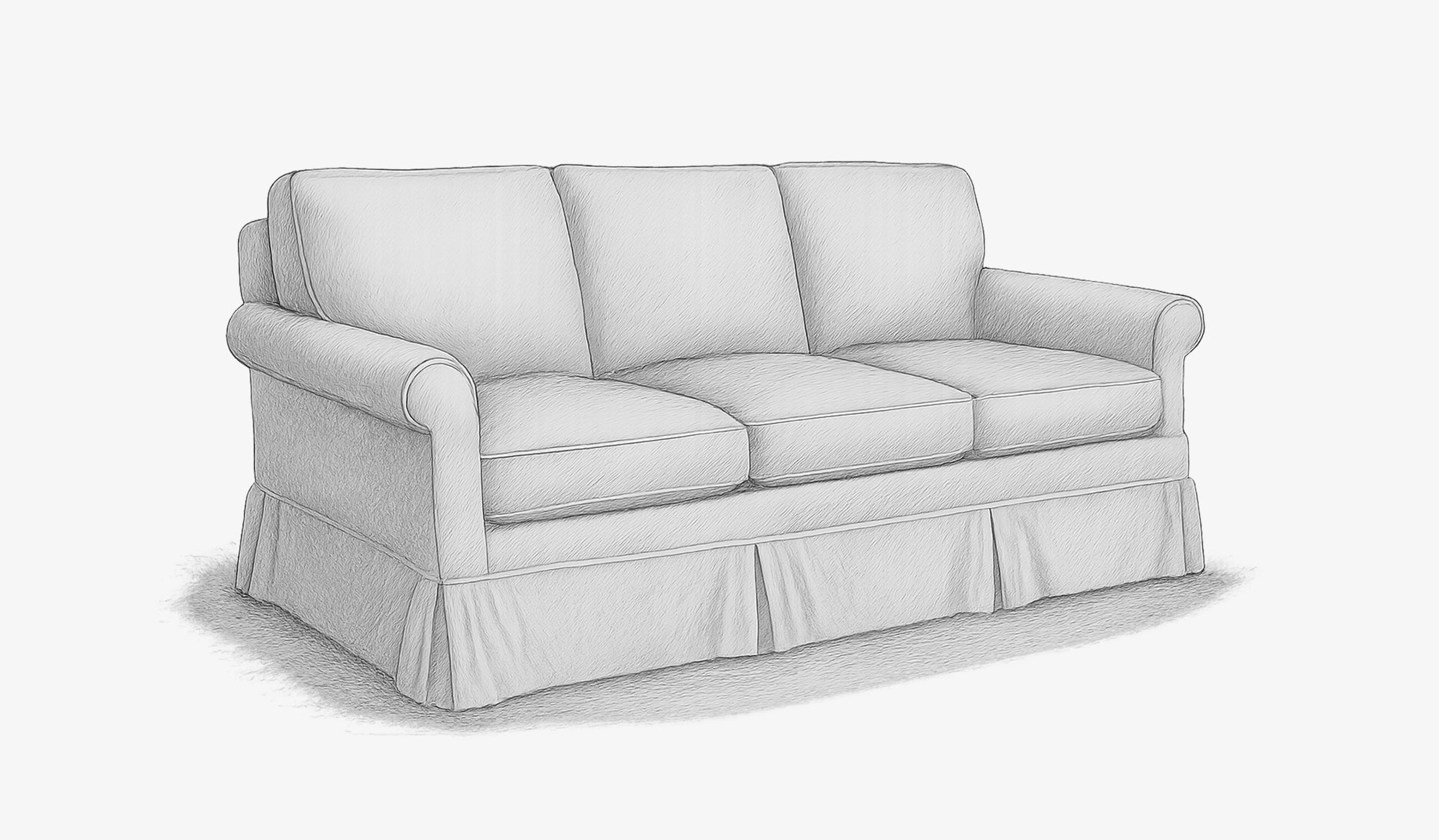The Sibyl Sofa exudes graceful charm with its generous scroll arms and skirt. It’s a warm, welcoming piece that holds its own in both refined and relaxed interiors.