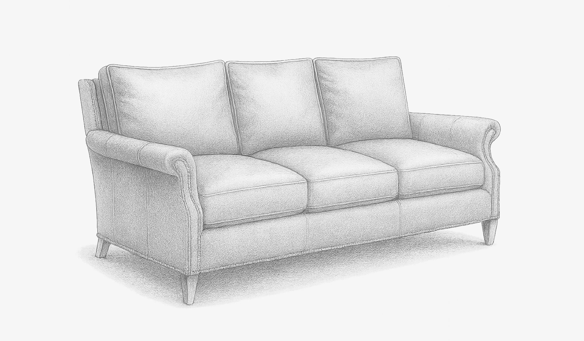 The Whitmore Sofa exudes timeless elegance with its gently sloped lawson arms, refined nailhead trim, and classic three-over-three cushion layout. A softly arched back and tailored benchwork lend sophistication, while plush back pillows and welted seat cushions offer inviting comfort. This is a heritage silhouette, made for the modern traditionalist.