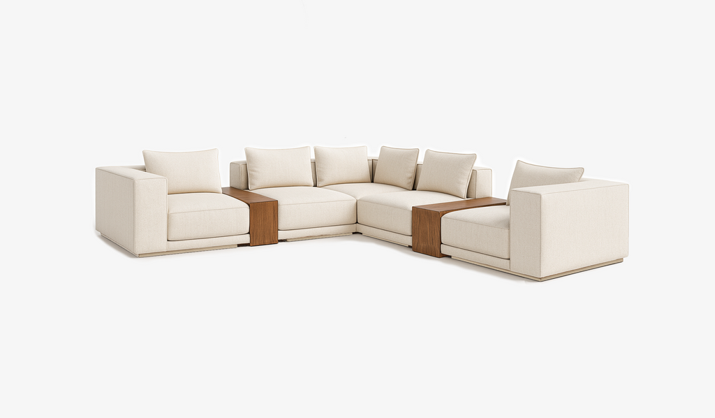 Track arms stand like columns, cushions soften like clouds, every seam placed with intent.