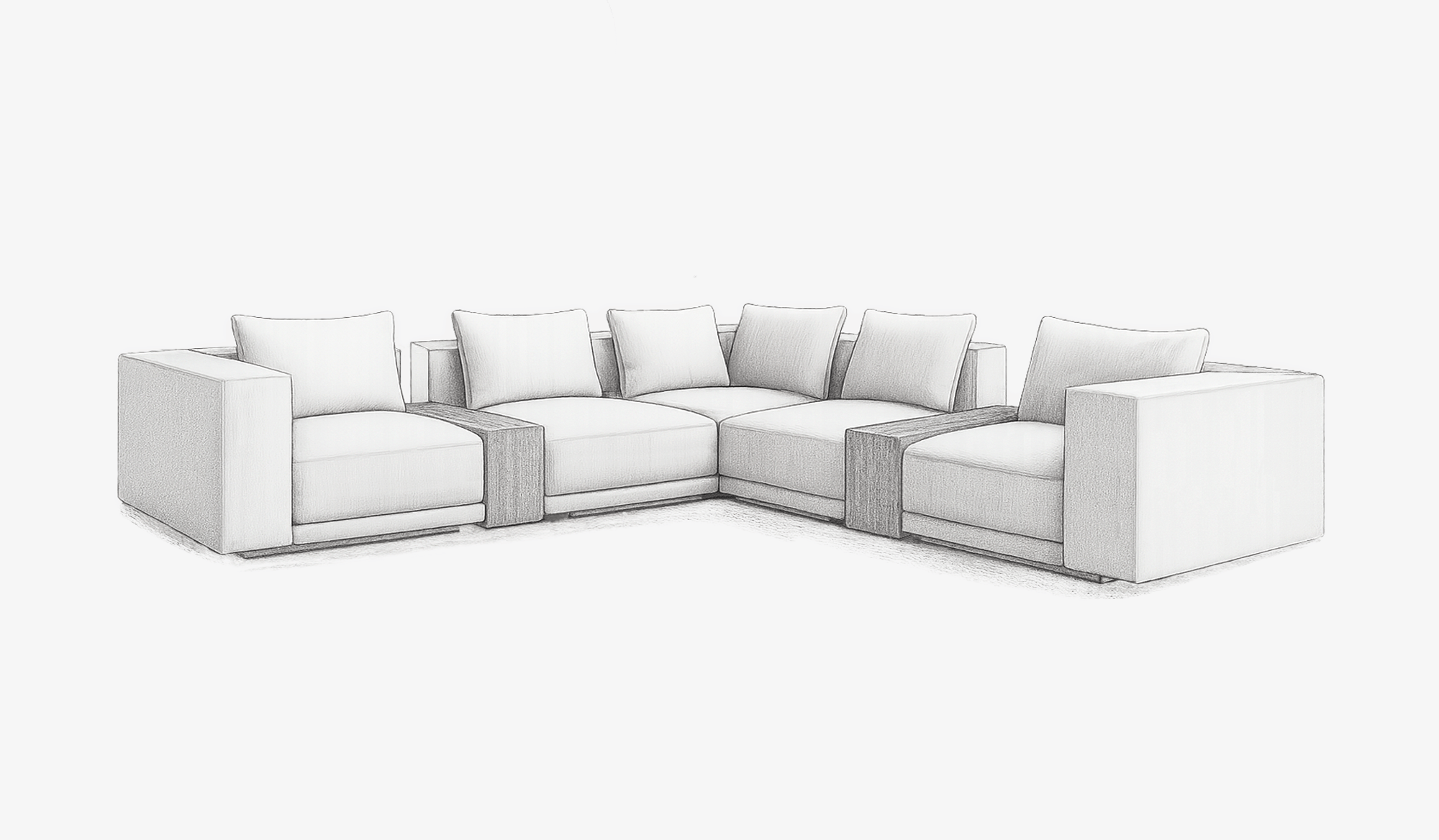 Napoli is shaped for the quiet moments that anchor a life. Track arms stand like columns, cushions soften like clouds, and seams are placed with intention.