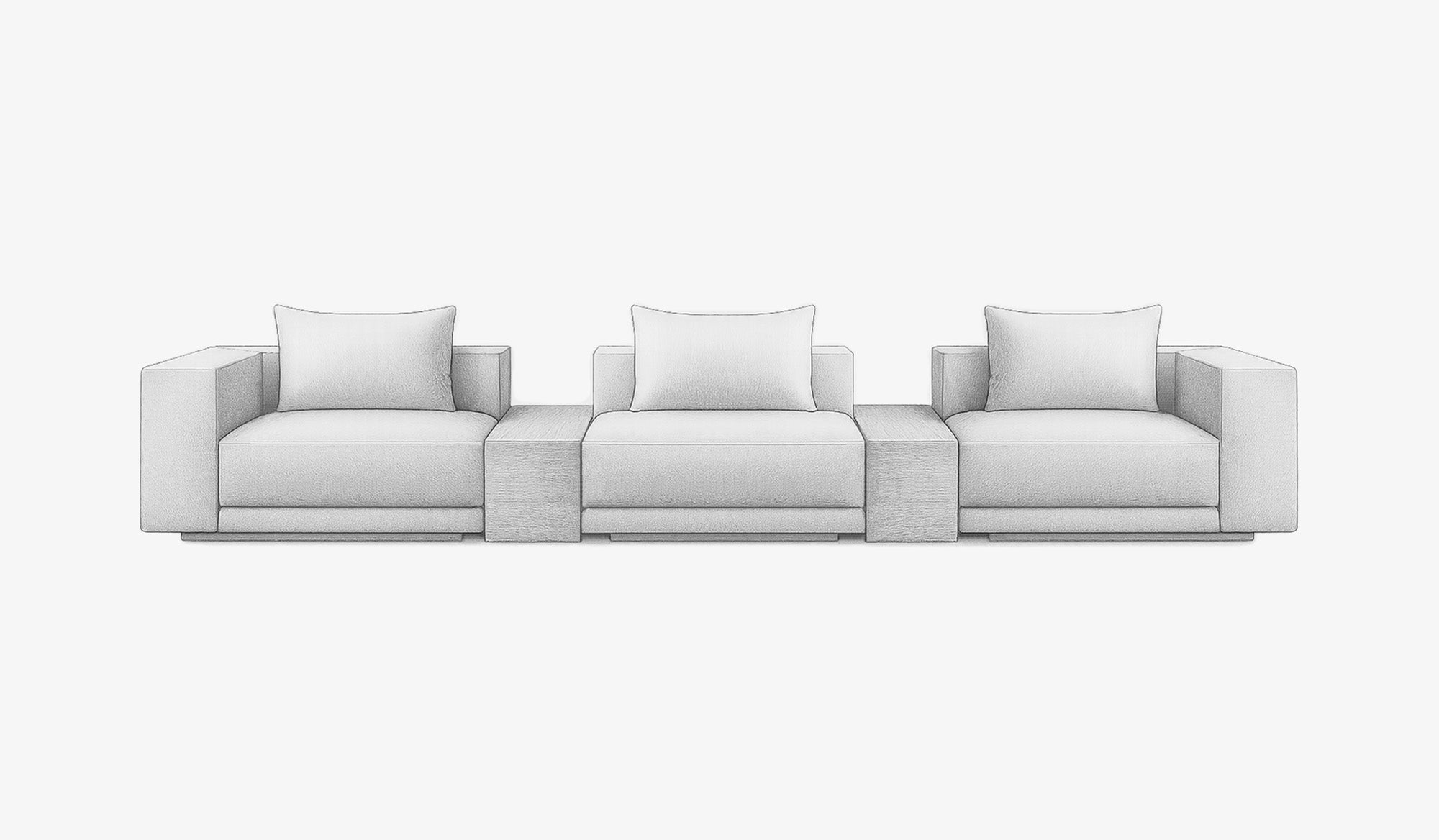 Napoli is shaped for the quiet moments that anchor a life. Track arms stand like columns, cushions soften like clouds, and seams are placed with intention.