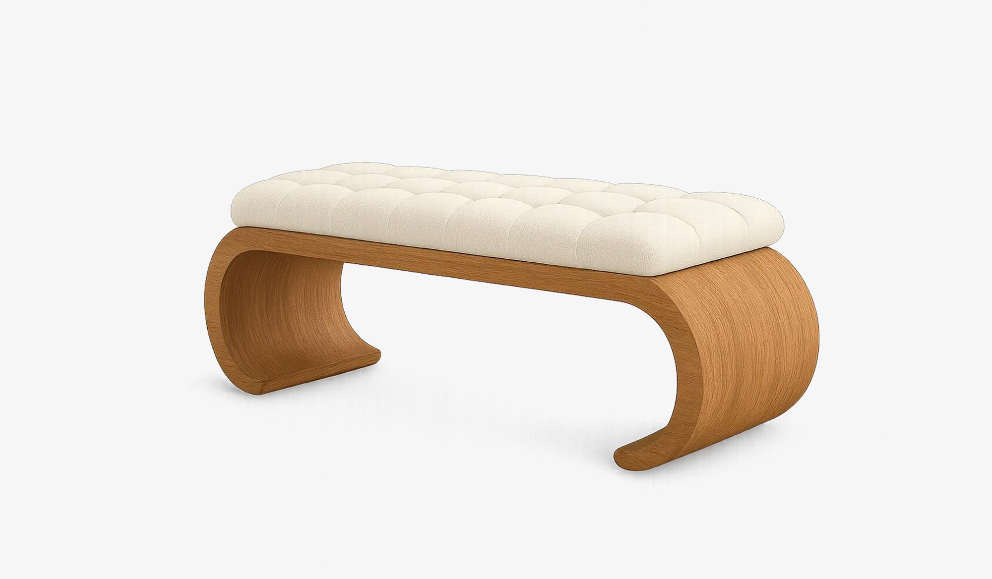 A bold, architectural silhouette that feels both modern and indulgent. The Cuff Bench offers a generously tufted seat over an elegant wraparound base, creating a confident focal point for larger spaces like primary suites or grand foyers.