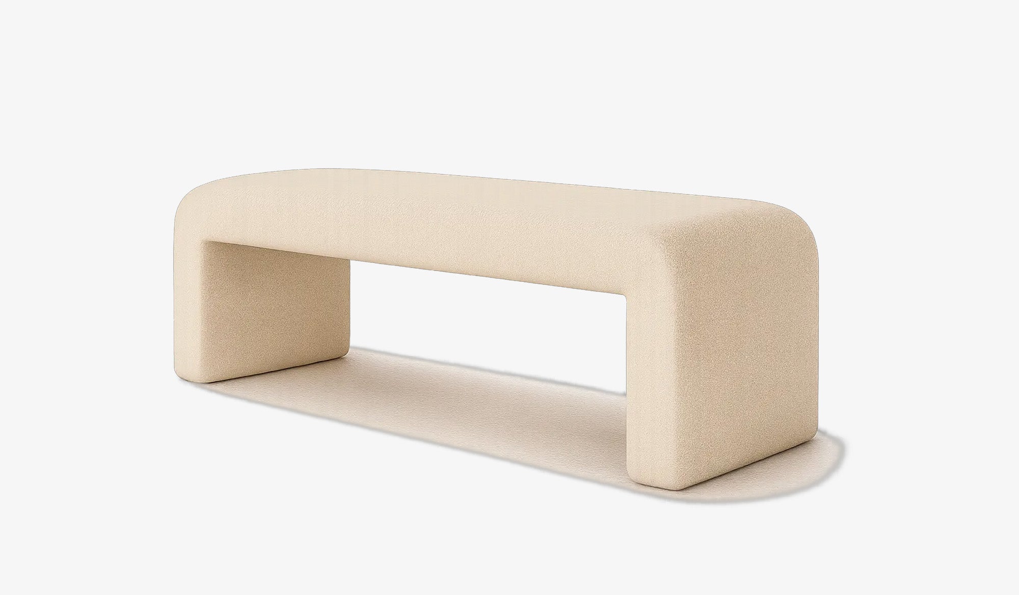 A grounded silhouette with megalithic charm. LITHO is sculpted with softened corners and full volume. Its quiet strength makes it versatile, whether at the foot of a bed or as extra seating in a gallery-like space.