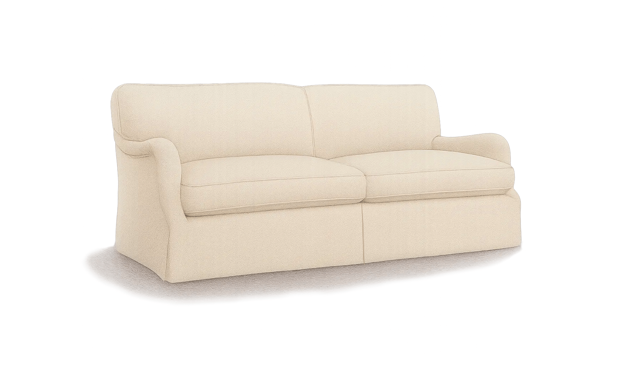 The Amara Sofa pairs a refined english arm silhouette with a waterfall skirt and two luxuriously plush seat cushions. A seamless option for both transitional and traditional interiors.