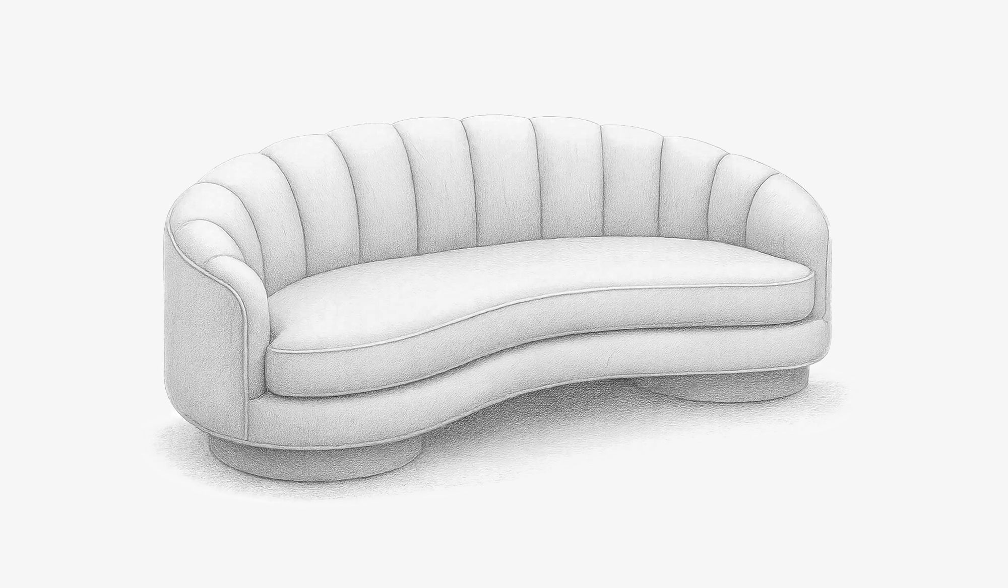 Le Croissant curves with intention—sculpted, indulgent, and unmistakably French in spirit. Channel tufting wraps the back like a shell, while the seat arcs in a soft crescent. It's a silhouette you feel before you sit.