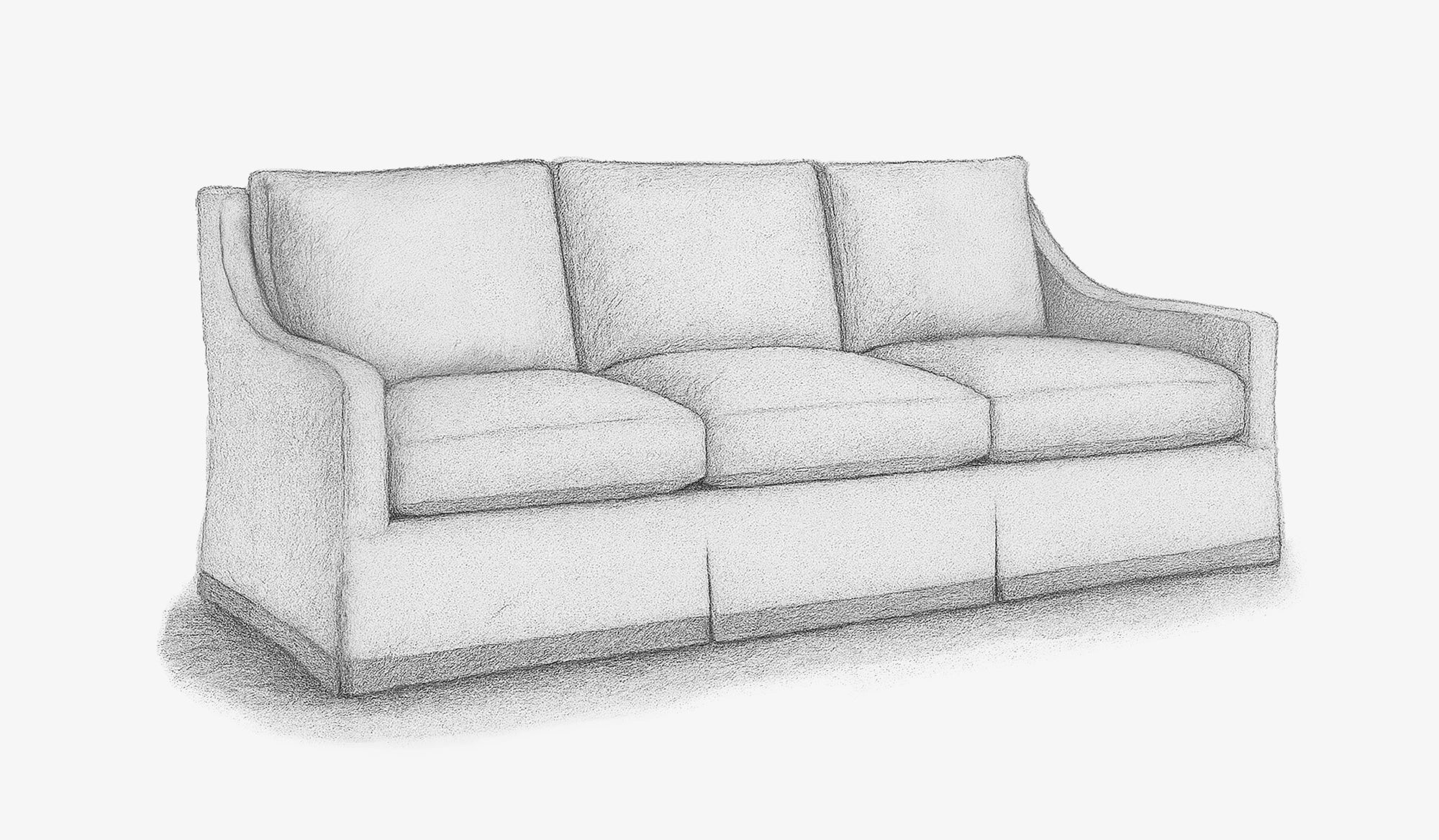 The Marlowe Sofa evokes graceful movement with its continuous slope arm silhouette and waterfall skirt. Its smooth lines offer a refined softness that’s equally at home in a city apartment or a coastal retreat.