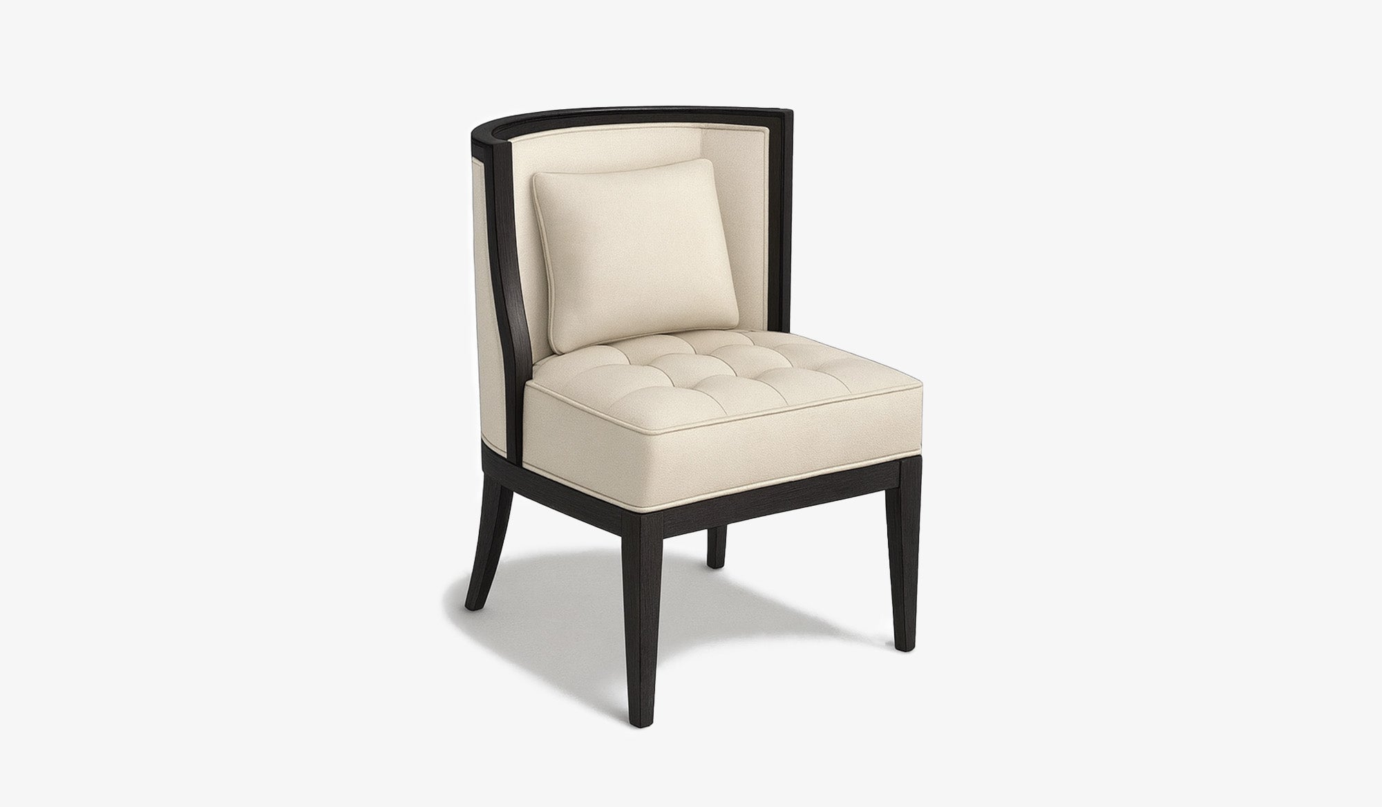 The Ondara chair is both sculptural and grounded—its curved frame encircles like a crescent, while the tufted seat holds posture with quiet strength. It’s a study in tension: delicate yet weighty, refined but unafraid to be seen.