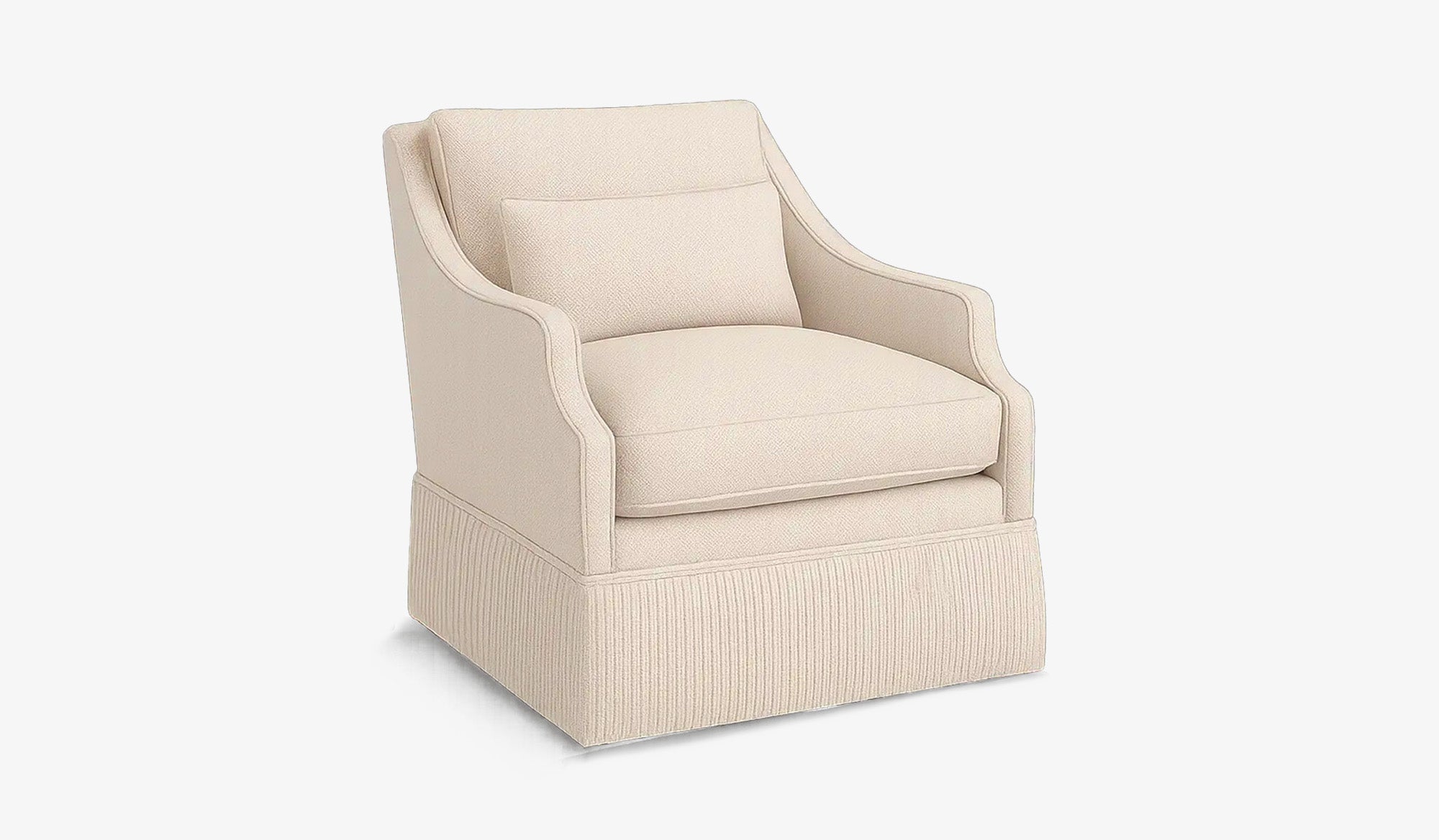 The Solange chair is graceful in its restraint. A sculpted silhouette tapers into a waterfall skirt, while the tailored trim and layered cushions bring structure without stiffness. There’s warmth in its posture—soft but assured.